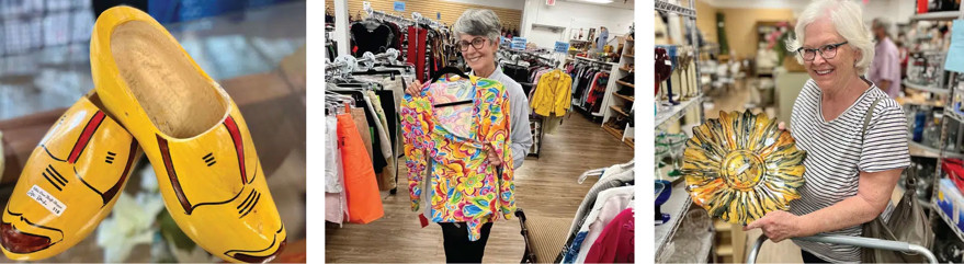 “I always spot something marvelous,” says Pat Latham, who considers herself an experienced thrifter. “And prices here are the best. Look at this really unique platter… isn’t it beautiful?” She flashes a colorful iridescent flower-shaped tray and confesses, “Yeah, I’m pretty sure there’s more stuff here that I simply must take home!”